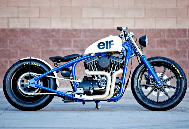 Based on a 1995 1200cc Evo, the del Rey boasts a clean design and a matte white, satin black, and electric blue paint job inspired by the 1970’s Elf formula One race cars.