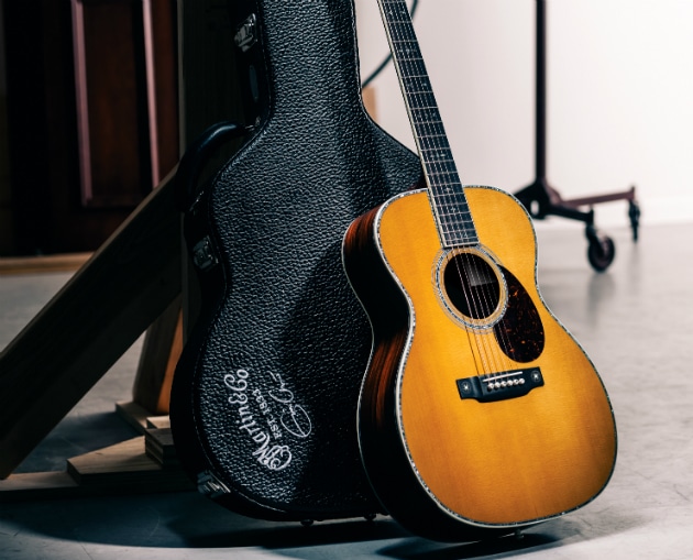 Eric Clapton’s collaboration with Guitar Center, along with C.F. Martin Guitar resulted in a limited edition run of three different Martin acoustic guitars, with personal specification by Clapton himself. The three versions: a 000-28EC Madagascar Rosewood, a 000-45EC Madagascar Rosewood, and a 000-45EC in Brazilian Rosewood, are designed after the 14 fret 000 body style introduced in 1934, and feature “Crossroads” pearl inlays as well as hand-written Eric Clapton and Chris Martin signatures on the sound hole label. A certificate of authenticity is thrown in for good measure, which also bares the signatures.