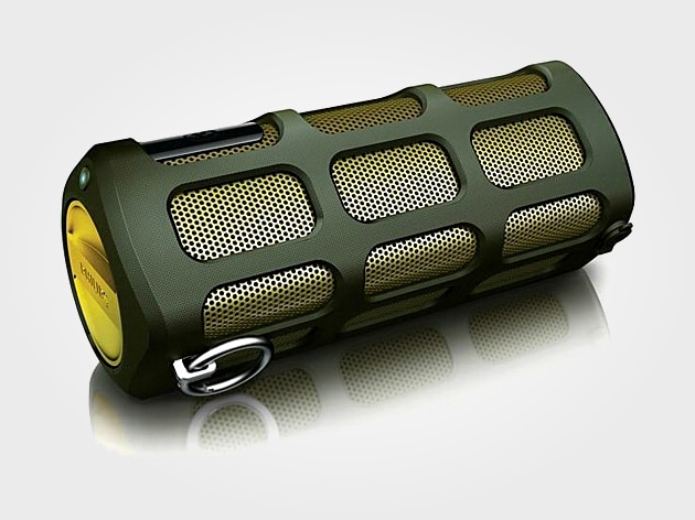 The Jabra Solemate ($150) is a good mix between ruggedness and portability. Its crisp, bass-intensive sound is powered by two acoustic tweeters, a powerful subwoofer, and a proprietary bass radiator that delivers a sound comparable to its more expensive counterparts. Along with standard bluetooth connectivity, the Jabra Solemate features a shoe-like tread on its bottom that not only protects it from everyday wear and tear, but also houses its 3.5mm cord. BUY IT