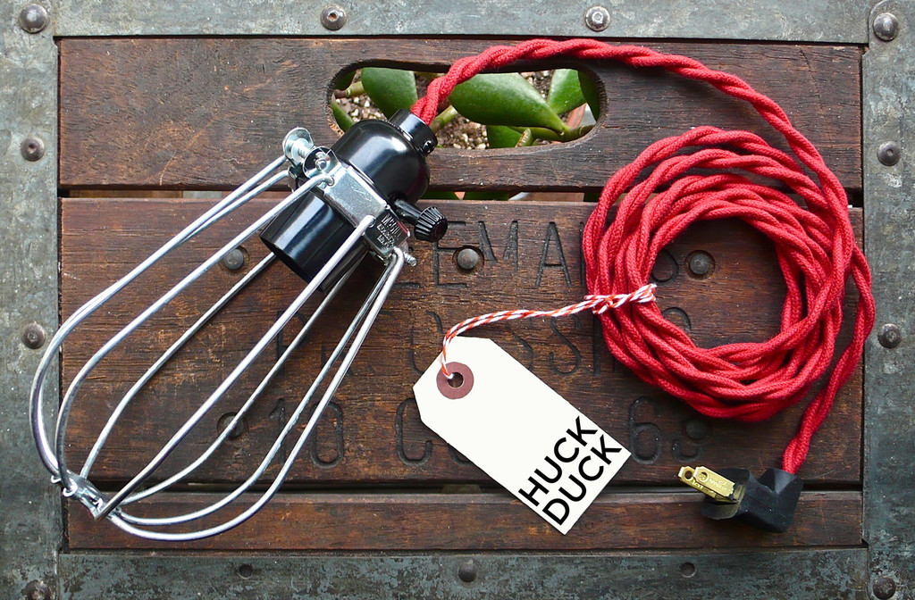 The Mcgill Cage Lamp is hand-made in the Lower East Side of New York City by a unique and refreshingly-original company named HuckDuck. The McGill Cage Lamp features an attractive two-prong black rubber angle plug, a black phenolic turn-knob socket with an “on” and “off” switch, a 6-inch by 3.5-inch zinc-plated steel wire cage, and an 8-feet long cotton cord available in a variety of colors. Its uses are limitless. It can provide a convenient source of light for often dimly-lit closets or storage spaces, provide an aesthetically-pleasing reading light next to your bed, or accentuate the design and architecture of your home.
