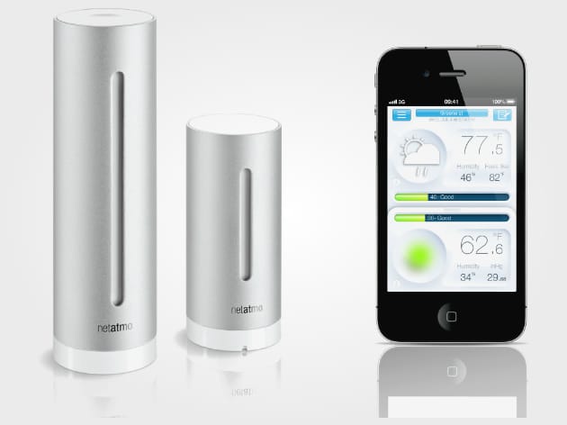 Since the weather channel is only correct about 25% of the time, take air monitoring into your own hands with the Netatmo Weather Station ($179). Working in conjunction with the free downloadable Netatmo app, the Netatmo Weather Station consists of two sensors that accurately monitor and record air-related stuff such as the CO2 concentration, air quality, indoor temperature, humidity, and even noise pollution—And then wirelessly transmits the findings to your iPhone in the form of various lists and graphs.