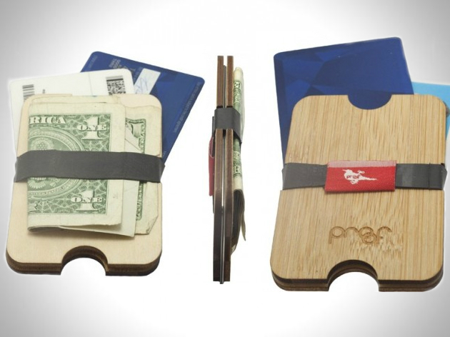 Sporting a minimalistic design with a touch of eco-friendliness, the Wood Wallet/Money Clip by Proof Eyewear keeps your cash and cards secure for carry in your pocket or bag. Measuring in at only 3mm thick, it is laser cut from one piece of sustainable, sturdy bamboo or birch wood, while a recycled bicycle inner tube provides a band for keeping cards or cash securely in place. Available in single slab or double slab birch or bamboo.