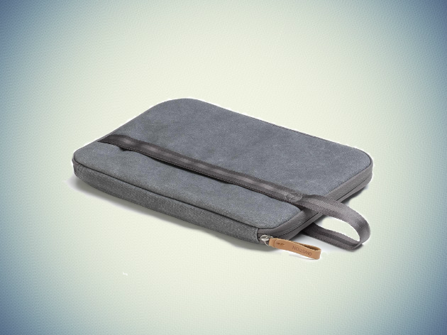 The Laptop Sleeve by Qwstion will keep your computer protected while looking good. It has a cotton canvas exterior and 100% cotton padded lining on the inside. Extra features include a handle strap and an extra pocket for documents or files.