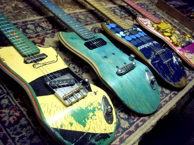 We’ve seen skateboards turned into some cool wall art as well as unique furniture, but neither are quite as original or functional as Skateboard Guitars ($1,000). Crafted in Argentina by luthier Ezequiel Galasso and pro skateboarder Gianfranco de Gennaro Gilmour, these electric guitars are born from once-thrashed skateboards outfitted with original whammy bars, pickups, and other hardware, complete with all of the chips, scratches, and scuffs that make each one unique.