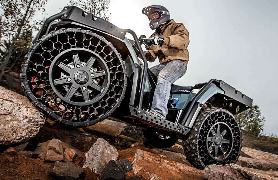 Why does the Polaris Sportsman WV850 H.O. qualify as an apocalypse survival vehicle? Not only is an ATV quick, fuel efficient, and perfect for tackling tight, rough terrain, but the WV850 H.O. features a bullet proof steel exoskeleton, steel racks, a 77 horsepower single speed transmission, an impressive towing capacity of 1,500 pounds, and the world’s first ever non-pneumatic tires that can take a licking from a .50 caliber round of ammo and still keep riding for the next 350 miles. LEARN MORE